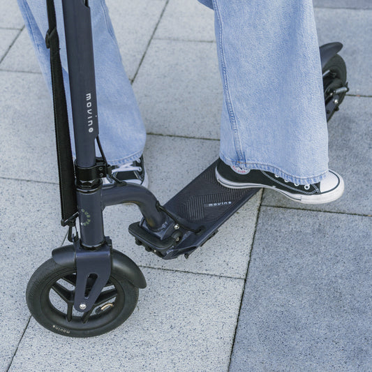 La taille de ce mode de transport est un atout indéniable. Une trottinette urbaine pliable prend très peu de place, ce qui vous permet de trouver facilement un endroit où la mettre. La trottinette est également idéale comme moyen de transport intermédiaire. Grâce à sa petite taille et à son système de pliage rapide, vous pouvez la transporter sans effort jusqu'à votre destination finale – que ce soit le bureau, le bus ou le tramway. Avec Movino, parcourez facilement de grandes distances dans l'espace urbain. C'est simple – roulez, marchez et roulez !