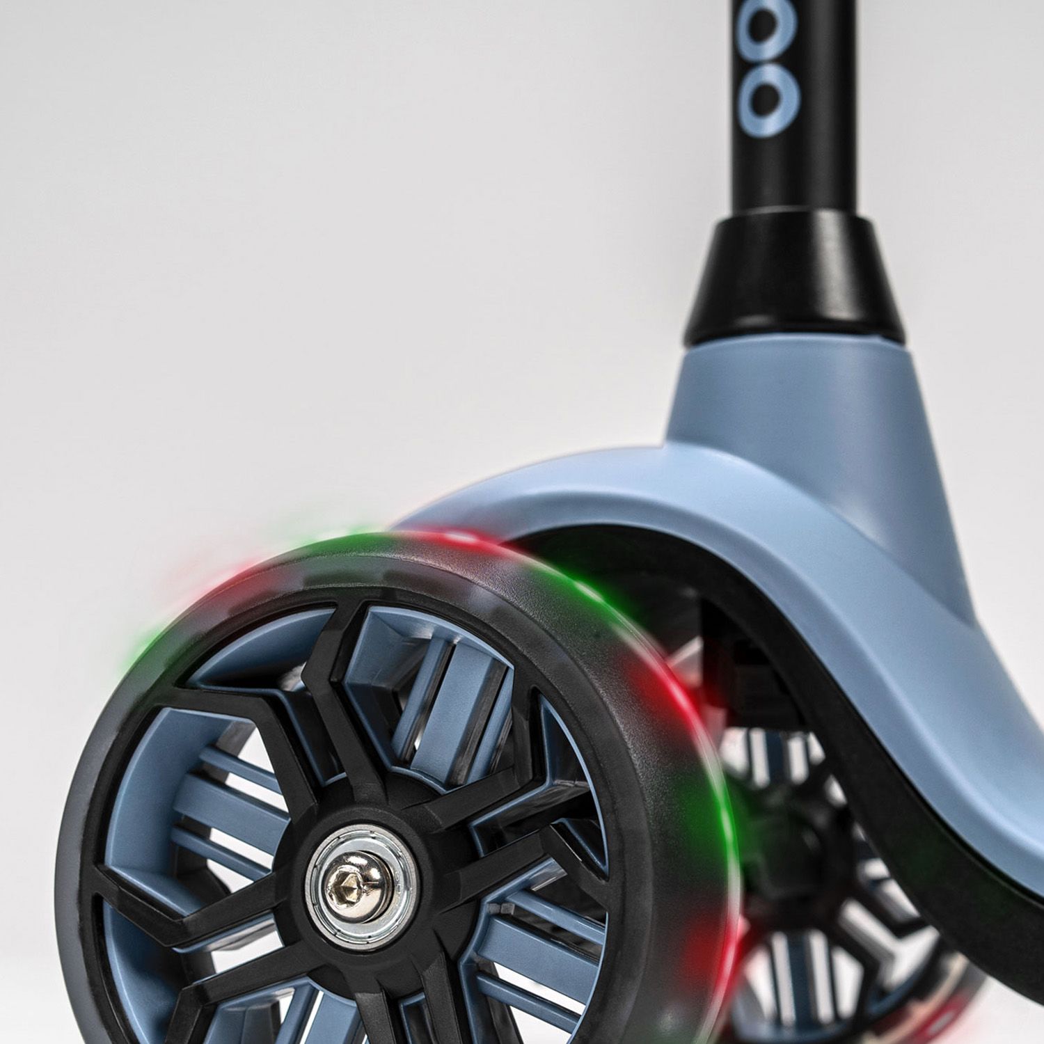 The scooter's wheels light up as soon as it starts moving, thanks to built-in red and green LEDs. This feature further encourages kids to stay active, while also giving the scooter a unique and appealing look. The wide spacing of the wheels ensures stability during rides.