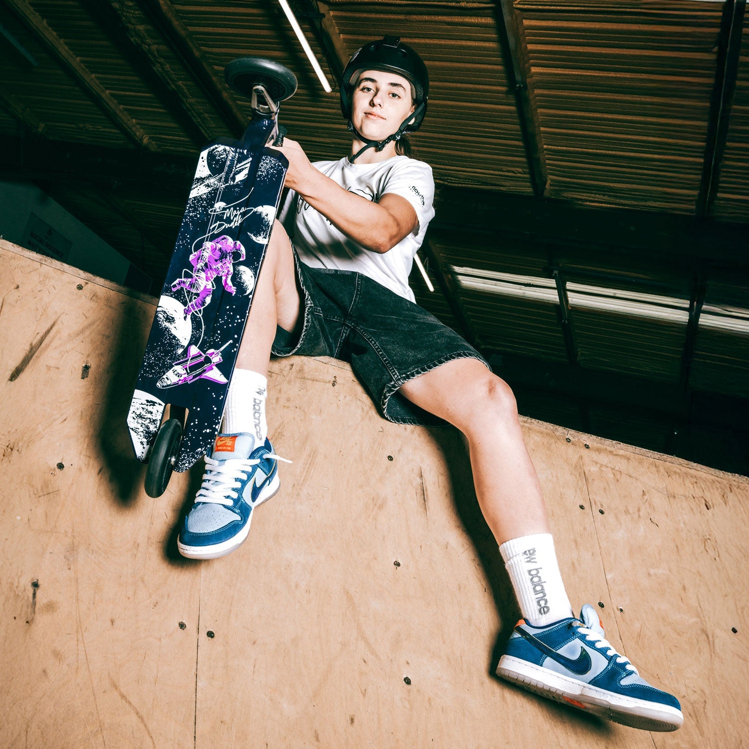 When you're mid-air, every detail is worth its weight in gold. That’s why Maja’s park deck features her chosen dimensions: 48 cm in length and 12.5 cm in width, weighing in at just 1.34 kg! These specs allow you to spin tricks as if you were in zero gravity.