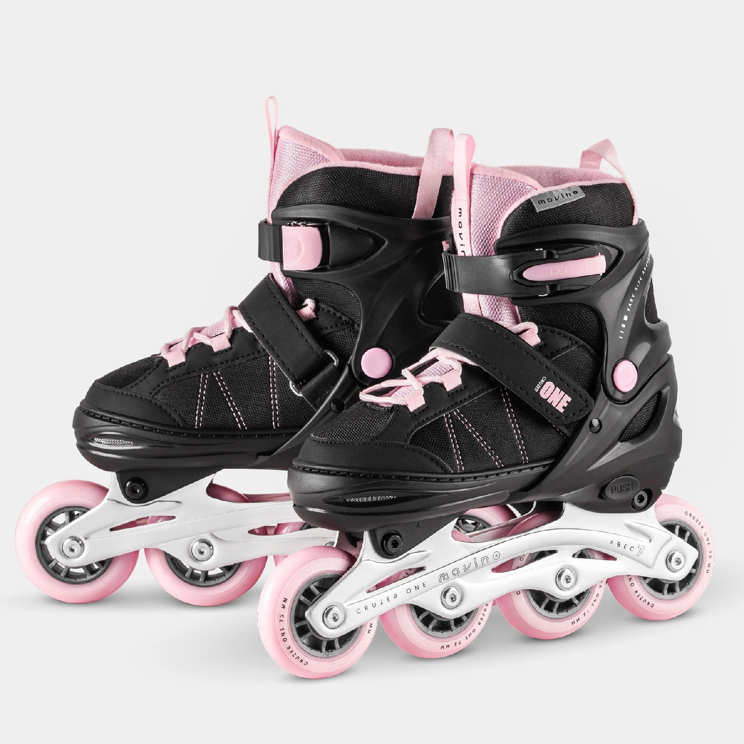 Les premiers rollers sont inoubliables – pour les enfants comme pour les adultes ! Les Movino Cruzer One garantissent que ces souvenirs seront positivement inoubliables ! Le système de fermeture triple stabilise le pied, tandis que les roues en caoutchouc synthétique, montées sur des roulements ABEC-7 durables, offrent une accélération parfaite pour les premières balades... et pas seulement les premières, grâce à la taille réglable du patin !