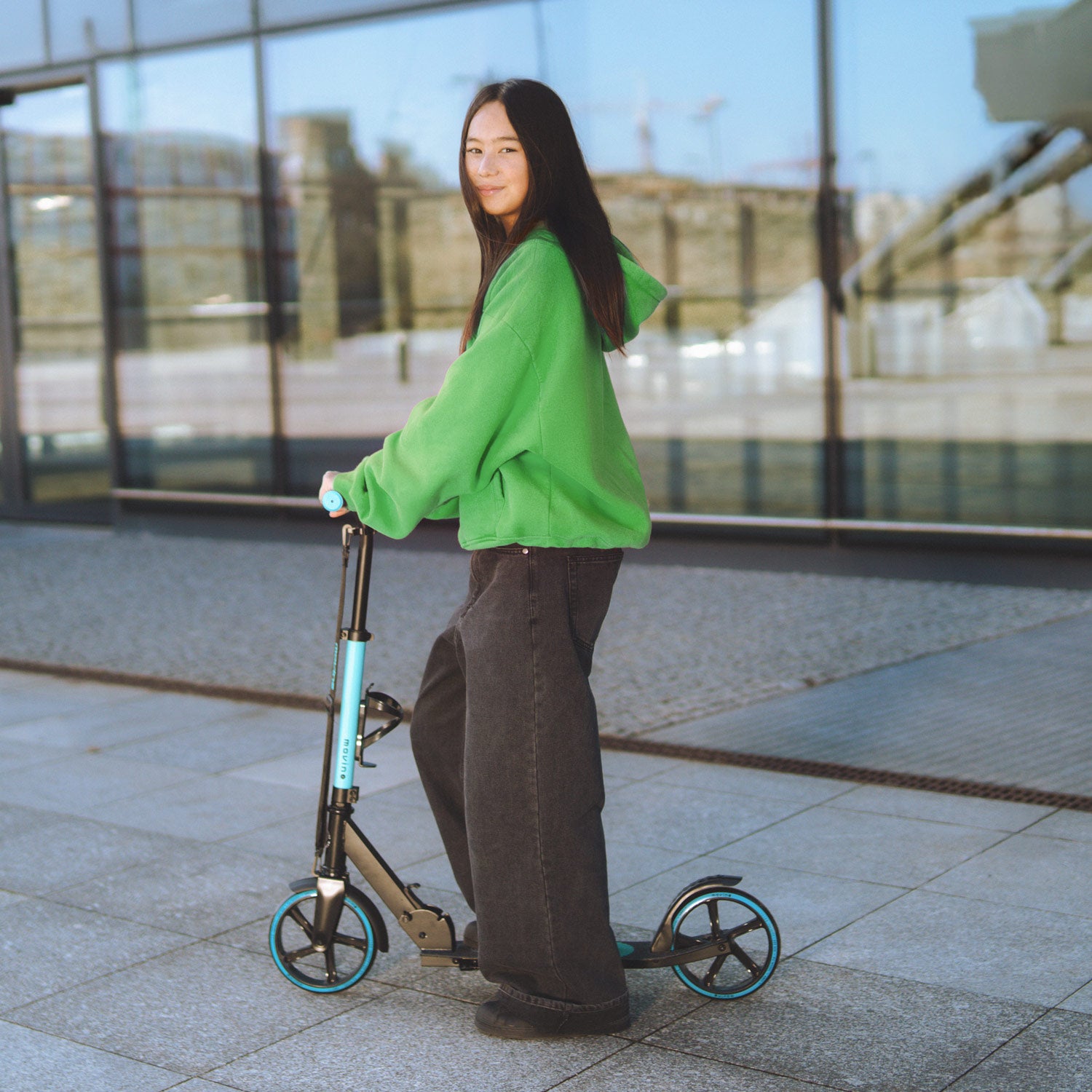 Les enfants, qu'ils soient plus jeunes ou plus âgés, doivent se rendre dans des endroits divers, chaque jour. Avec la trottinette Movino Infinity, ils peuvent y aller de manière autonome ! Sa structure légère, son plateau bas et ses grandes roues garantissent un trajet optimal et une dose quotidienne de mouvement, bénéfique pour la santé.