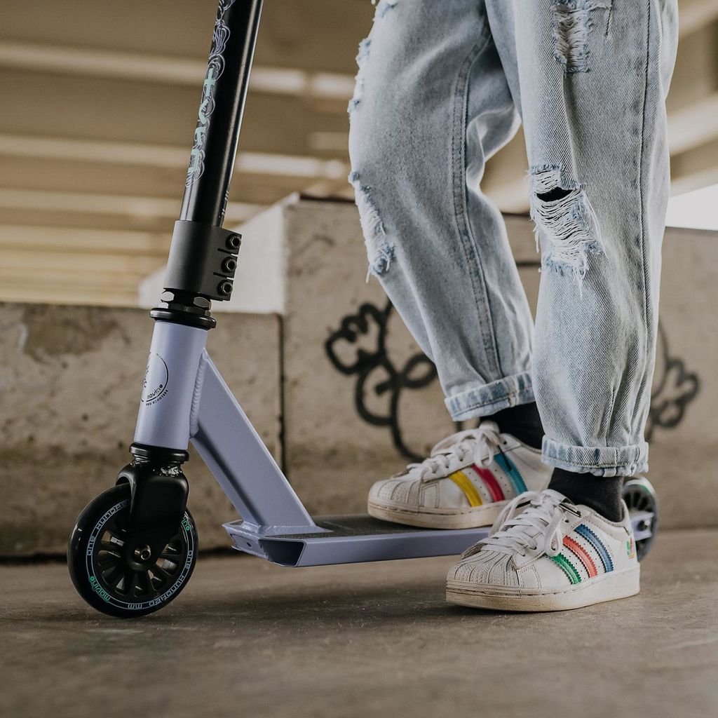 La première trottinette freestyle d'un enfant doit être polyvalente, de taille adaptée et, selon nous chez Movino, de bonne qualité ! Le modèle Tyro est équipé de roues en nylon-core de 100 mm de diamètre, d'un système de compression fileté et d'un deck en aluminium, le tout pour un poids total ne dépassant pas 2,9 kg ! C'est une trottinette légère et robuste qui ouvre aux jeunes riders le monde des figures dans les skateparks et en street.