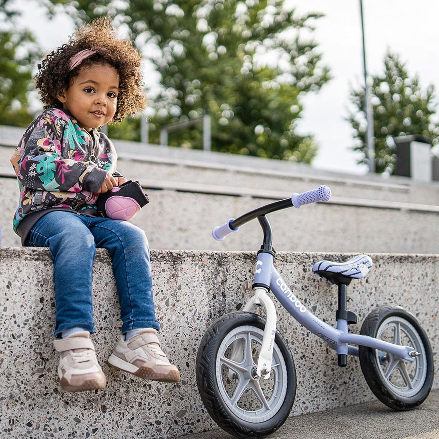 The Cariboo Classic balance bike features a curved frame that simplifies getting on and off for little riders. The soft, printed saddle has an ergonomic shape and adjustable height (33.5–48 cm), making it easy for parents to adapt the bike to their child’s growing needs.