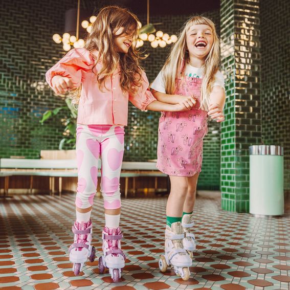 With Ballerina skates, the first steps on wheels become a pleasure. This model has been designed specifically for the youngest girls starting their roller-skating journey. Thanks to the two riding modes, the child can start by moving with locked wheels (walking mode) and gradually transition from walking to smooth skating.