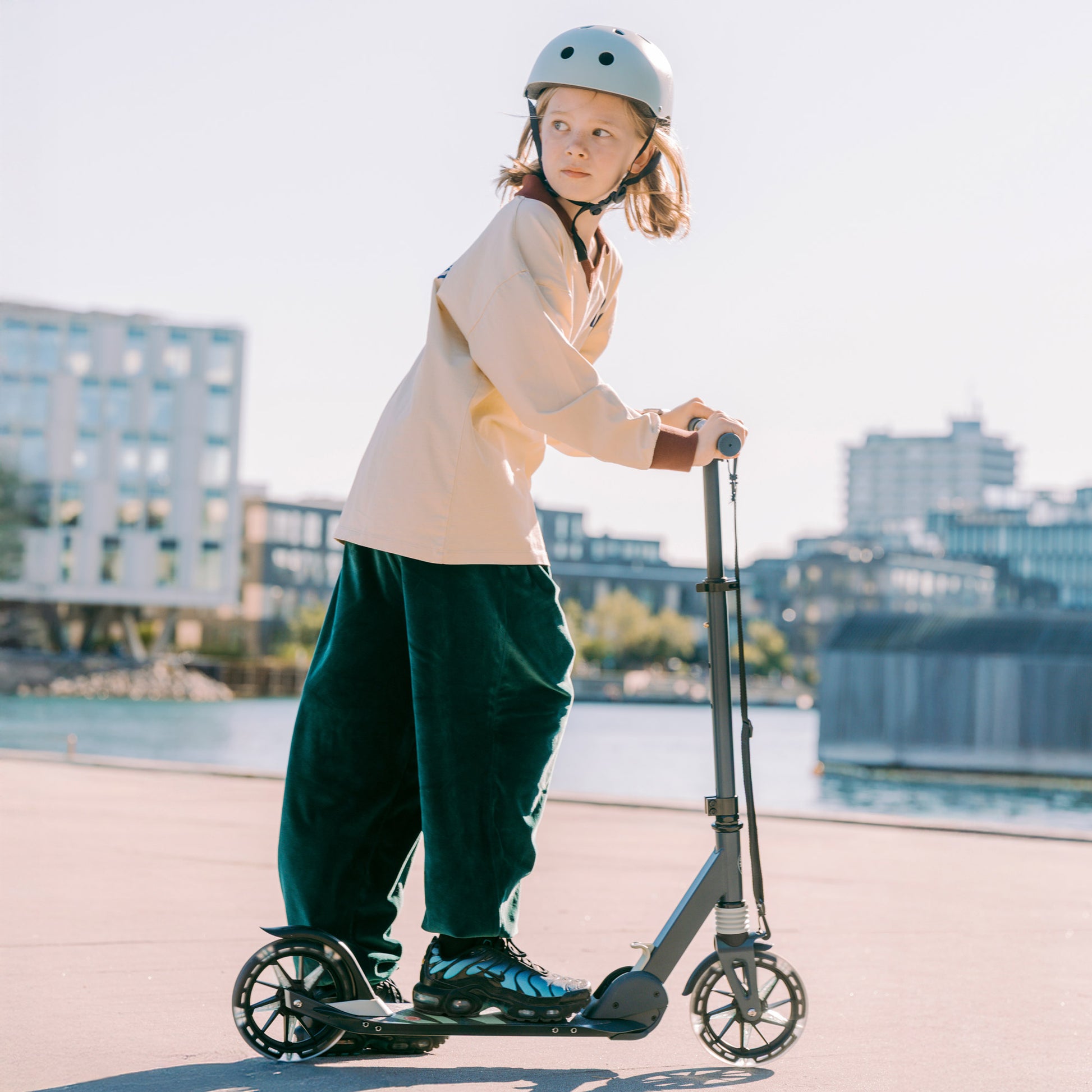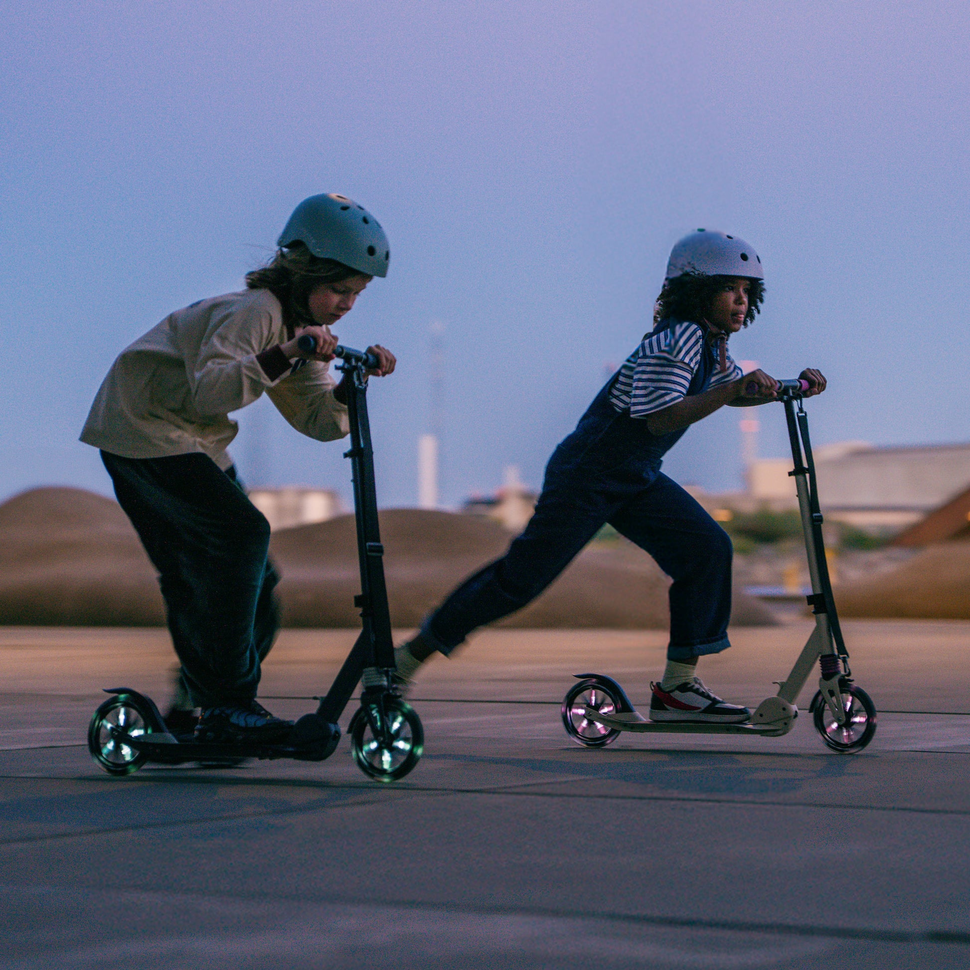 Un manillar que juega en tu equipo. Con el City Light, ajustas su altura como quieras – tú creces, y el patinete sigue tu crecimiento. Siempre a tu nivel, siempre listo para circular.