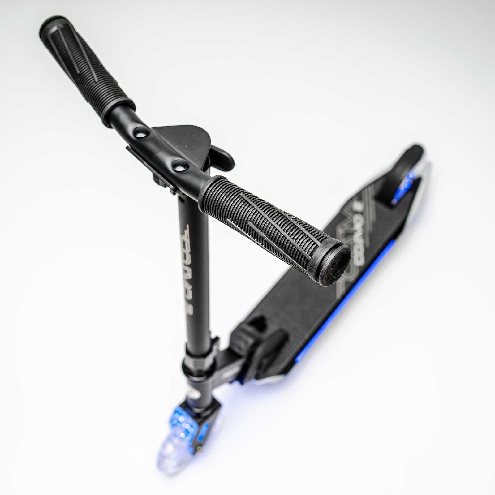 Los puños del patinete Cosmo2 están fabricados con un material muy suave, lo que hace que este modelo ofrezca un nivel superior de comodidad. Las estrías adicionales a lo largo de los agarres aseguran un agarre mucho más firme que con el simple acanalado.