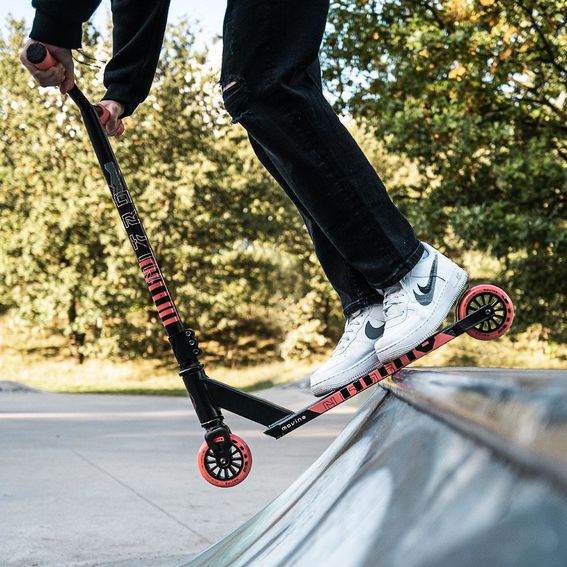 Las características del modelo Nitro están diseñadas para facilitar el aprendizaje de trucos. Las ruedas de 100 mm con rodamientos ABEC9 garantizan una gran precisión y maniobrabilidad, facilitando la práctica de nuevos trucos. El sistema de frenos FLEX FENDER garantiza un desgaste más lento de las ruedas. Los agarres acanalados de TPR de 160 mm aseguran un agarre firme.