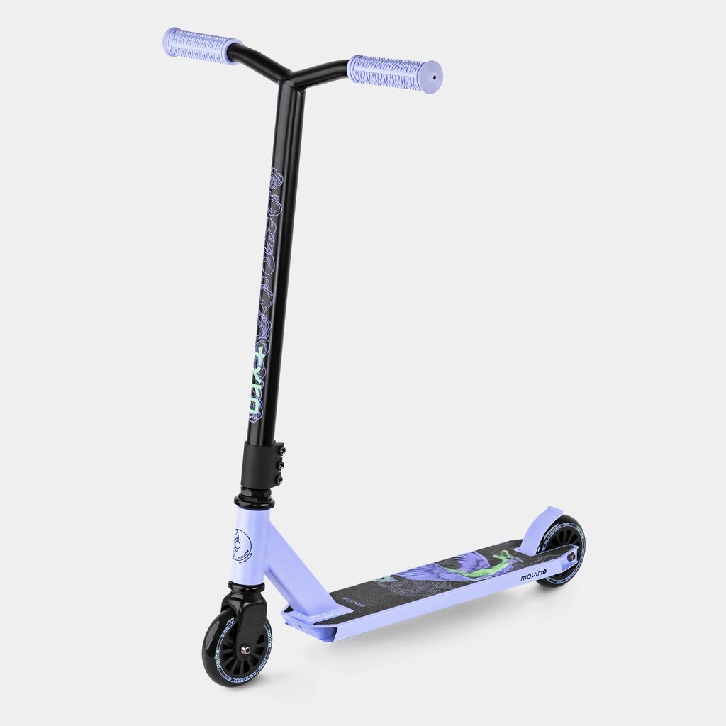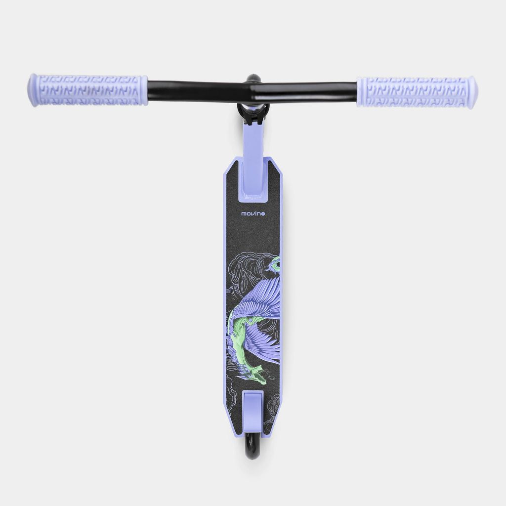 El modelo Movino Tyro llega justo donde comienza la pasión por el patinete stunt. Su especificación, desarrollada con la ayuda de riders profesionales del equipo Movino, está disponible en cuatro colores vibrantes. La plataforma y los puños en color lila, junto con un atrevido gráfico de dragón, capturan todas las miradas. De este modo, al elegir tu primer patinete, no tendrás que sacrificar calidad por diseño.