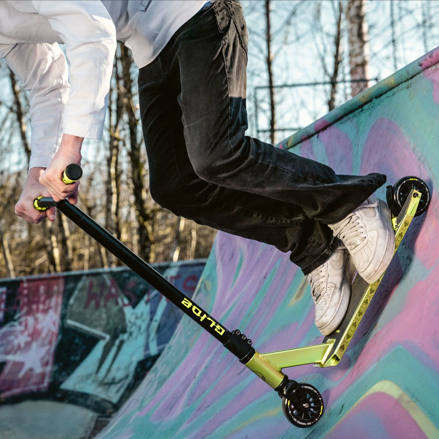 At Movino Pro Scooters, together with professionals and renowned athletes, we create equipment by riders, for riders – and that means for you too! The finishing touch of the Movino Glide scooter is its vibrant Lemon color, which will give your tricks a new dimension and vibe when viewed from the side, making you stand out in the crowd and at the skatepark.