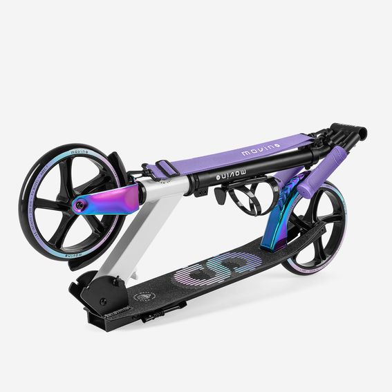 The Infinity Rainbow is a scooter you can always have at hand. The mechanism allows you to fold it up quickly, and the practical carrying strap lets you sling it over your shoulder like a bag. It weighs only 3.5 kg, so you can easily take it to school, public transport, or outings with friends.