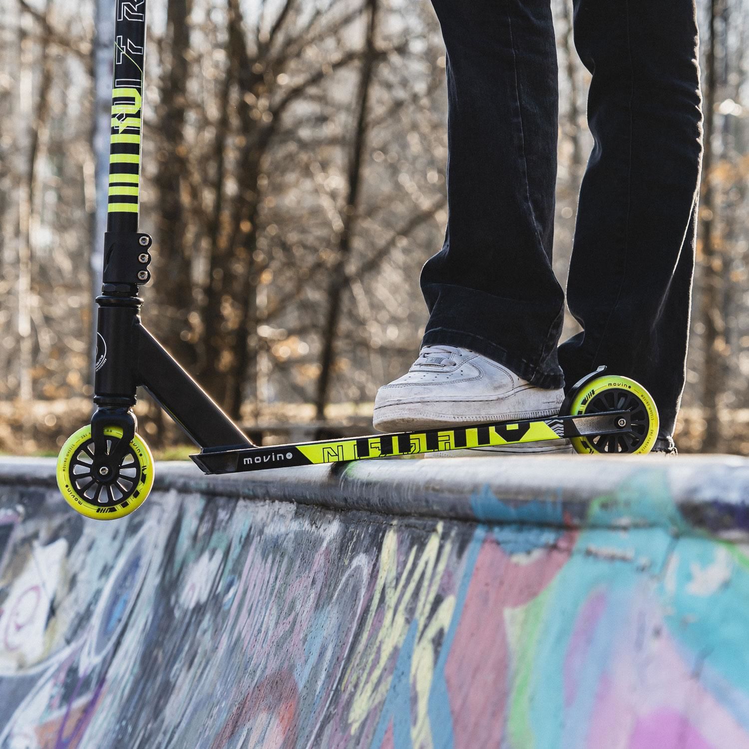We know that a scooter for beginners can combine high quality and a design that isn't boring, so we created it – the Movino Nitro Lemon! The experience gained through constant collaboration with talented and award-winning riders has resulted in pairing a lightweight, agile, and stable deck with fast and comfortable 100mm wheels featuring ABEC 9 bearings. This combination is eager to take off and ensure safe landings!
