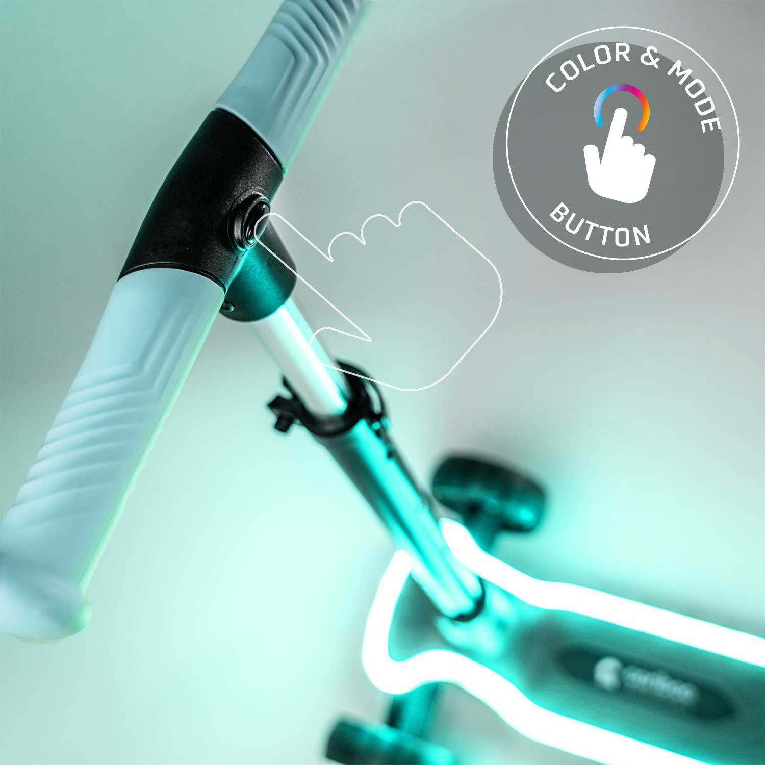 The LEDstar balance scooter is simple to use, making it easy for children to steer and maintain balance. It provides a safe way for kids to practice their motor skills. With three wheels and a balance-based turning system, this scooter is perfect for children who may not yet feel confident on traditional scooters. The adjustable handlebar height ensures the scooter grows along with your child. However, the standout feature of the LEDstar is its glowing deck, offering an impressive 11 lighting modes to choose from!