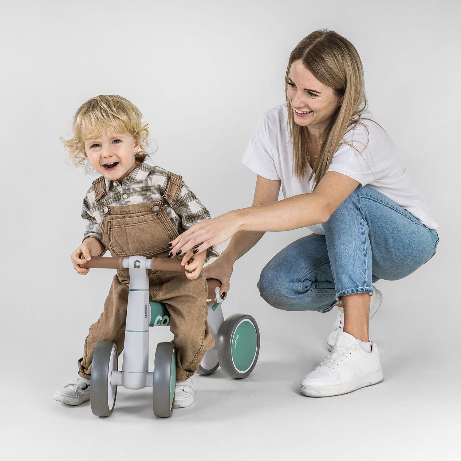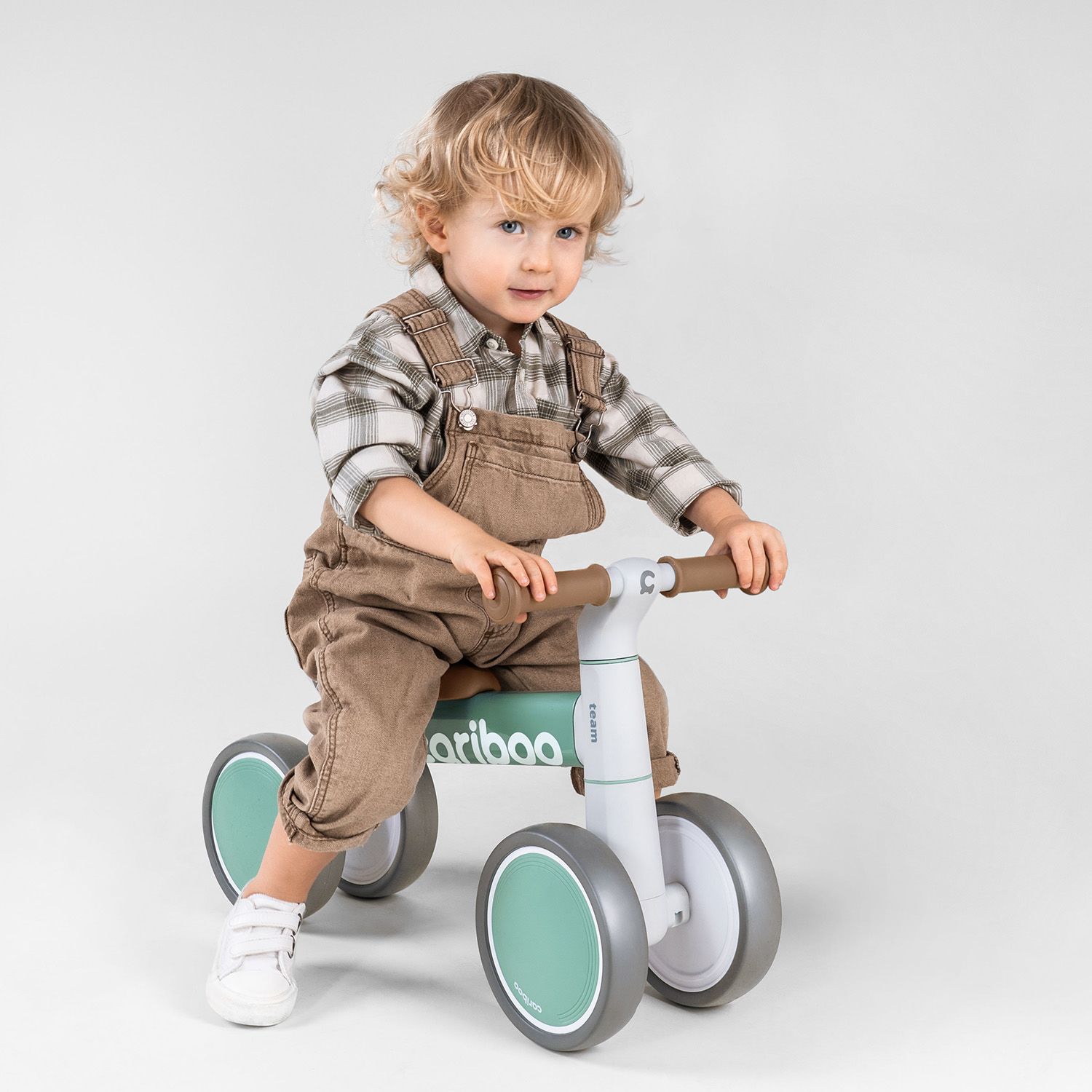 The Cariboo Team cross-country bicycle is equipped with four wheels (2 front and 2 rear) made of EVA foam. The bike is stable and safe, allowing you to learn how to balance your body and practice motor coordination.